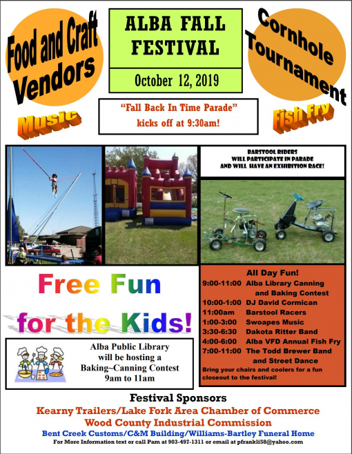 This year the Alba Fall Festival will be held October 12, 2019.