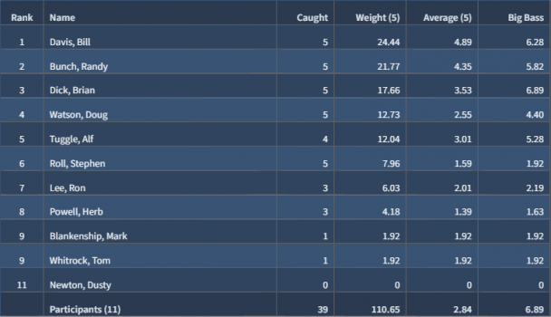 Weigh-in's are held at W. C. Swearingen Recreation Area in Yantis.